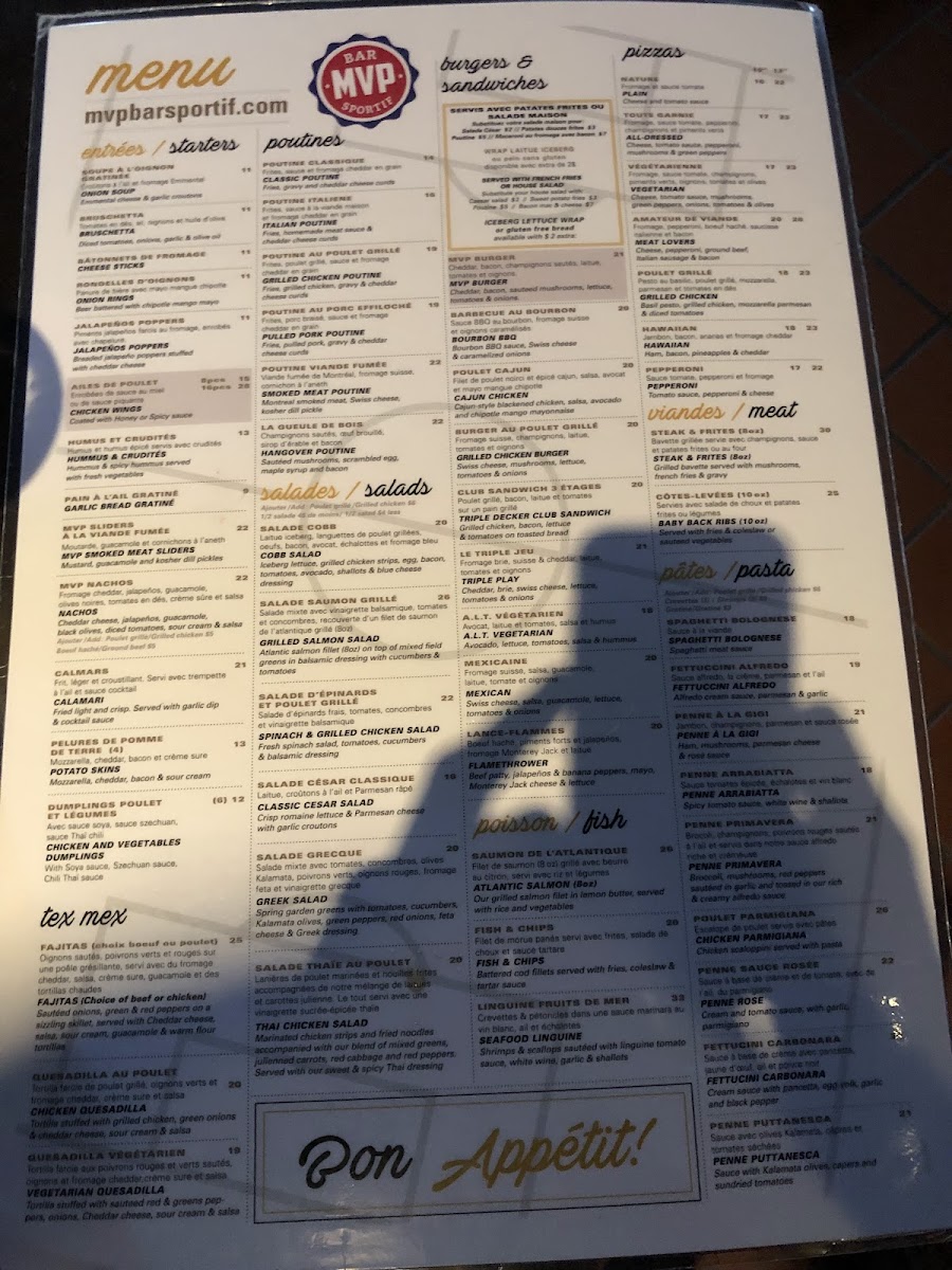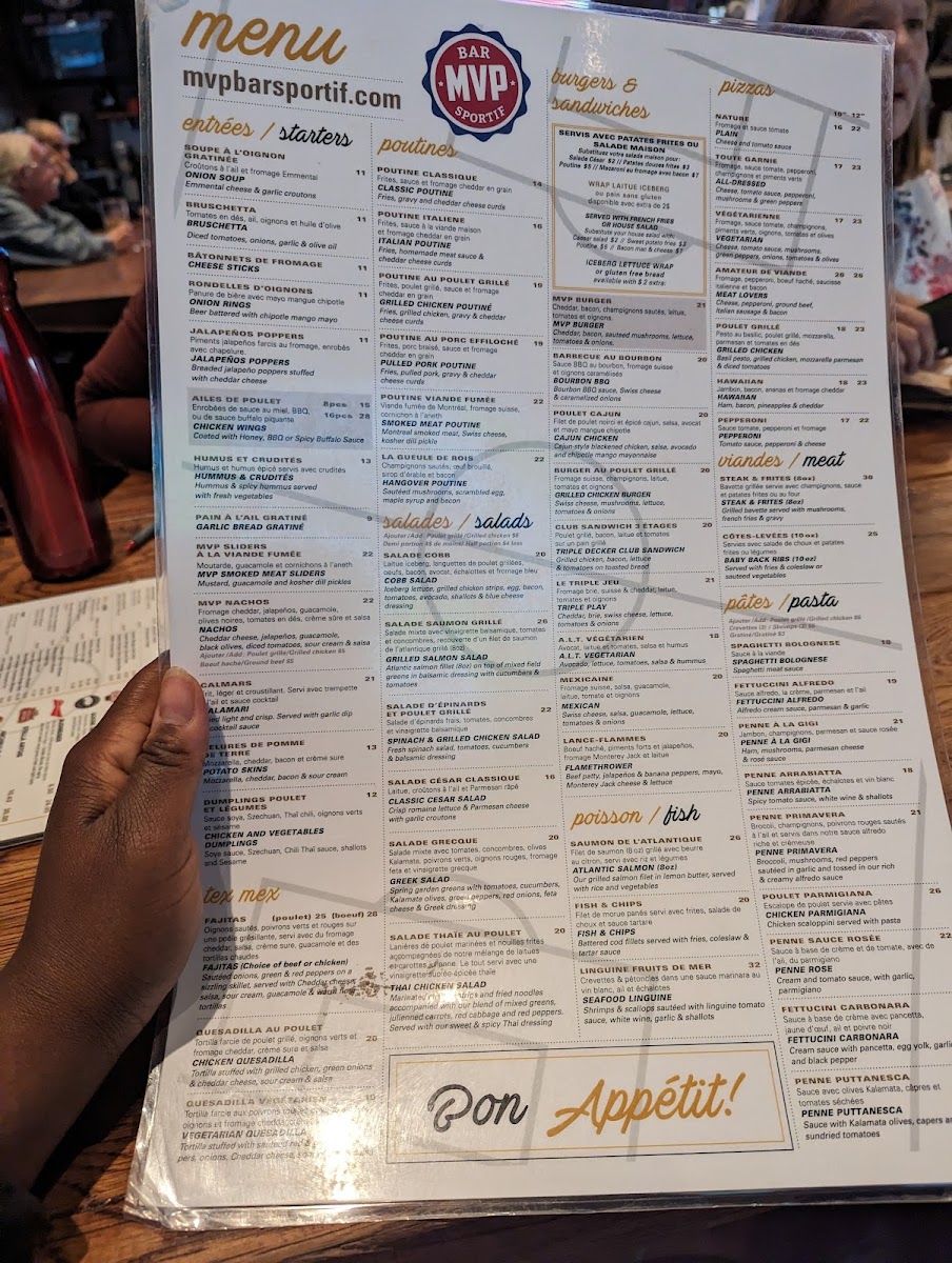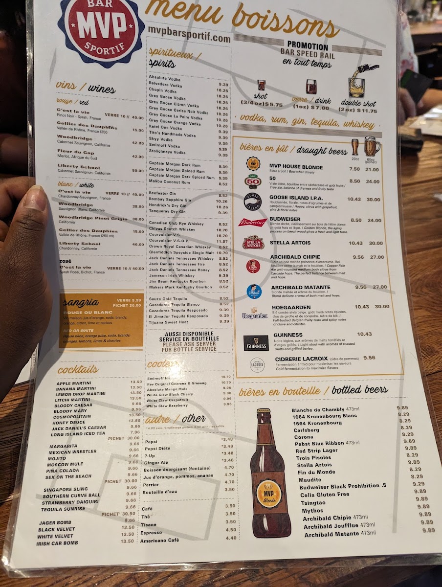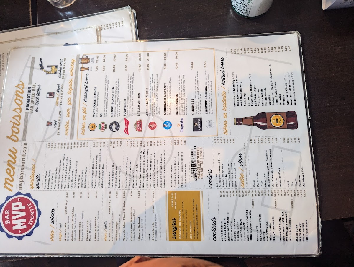 Welcome to MVP Restaurant & Bar Sportif! Located in the heart of Montréal, this sports bar offers a wide range of delicious dishes and drinks for you to enjoy.